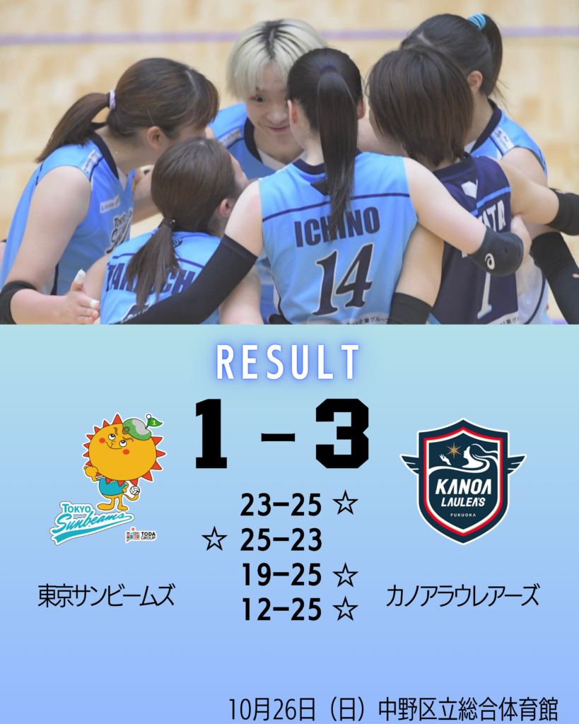 2025-26 V.LEAGUE WOMEN 10月26日(日) @中野区立総合体育館