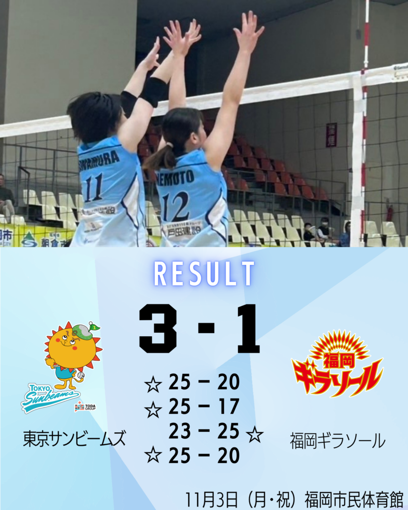 11月3日(月・祝) vs福岡ギラソール 結果報告