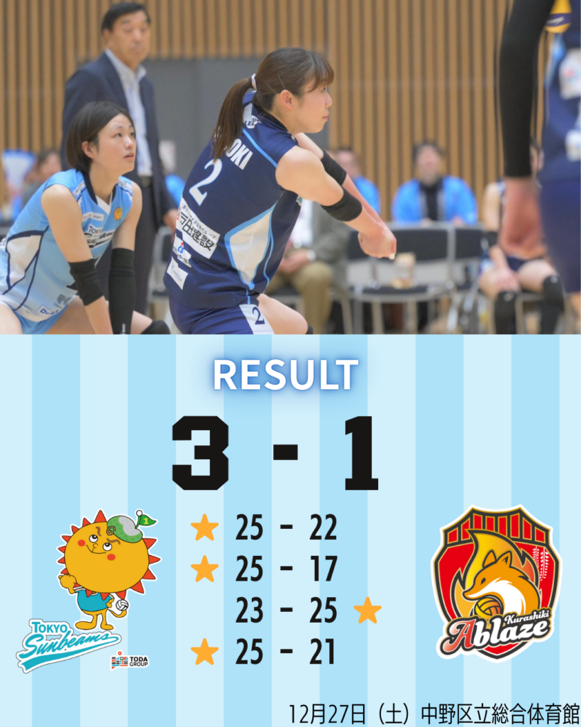 ◆12月28日(日) vs倉敷アブレイズ @中野区立総合体育館