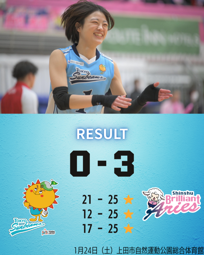 ◆1月24日(土) vs信州ブリリアントアリーズ @上田市自然公園総合体育館