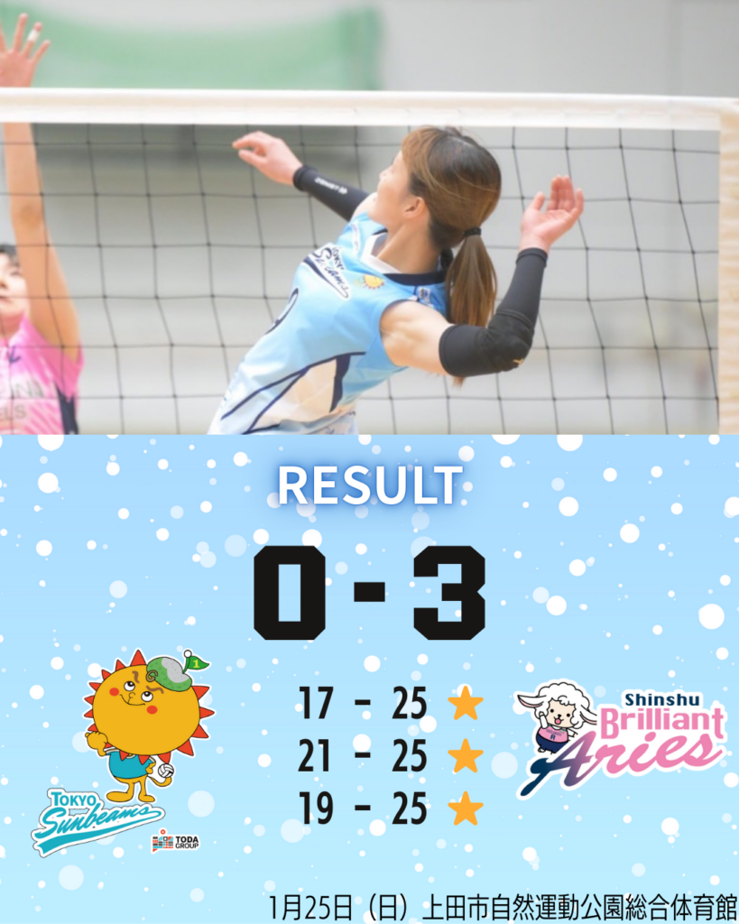 ◆1月25日(日) vs信州ブリリアントアリーズ @上田市自然公園総合体育館